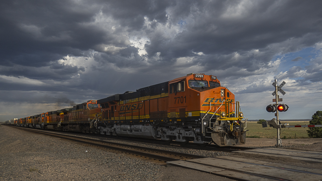 Driving into Mountainair, the rhythm of long freight trains—often stretching nearly 1 1/4m (2 km) with double-stacked containers and averaging 90–120 cars—welcomed us. Their hum and clatter set a rugged, moving backdrop for what was ahead.