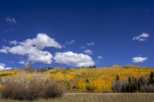 I’ve seen many landscapes, in many seasons. Yet never have I seen Aspen trees like these — endless groves of gold trembling in the wind, catching the light like laughter. Miles and miles of golden leaves, a living carpet rolling over the hills.